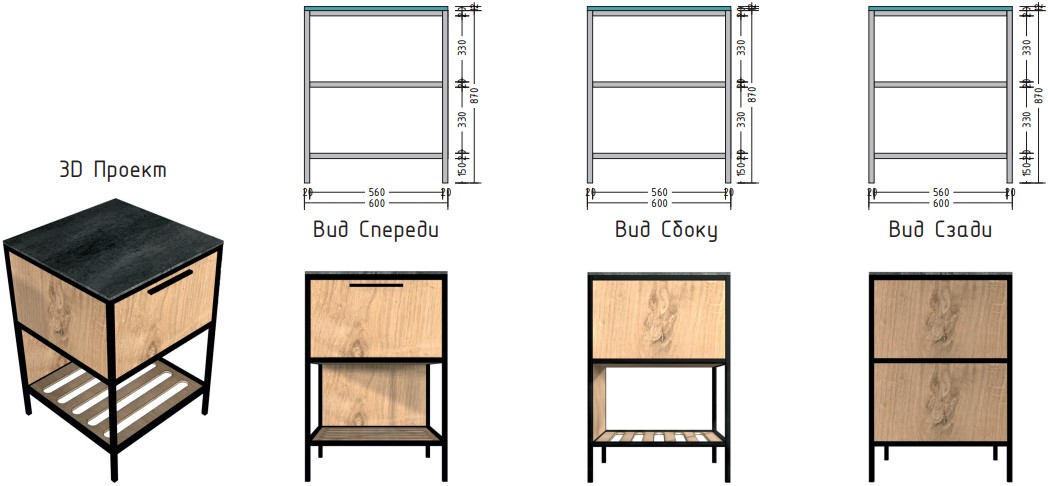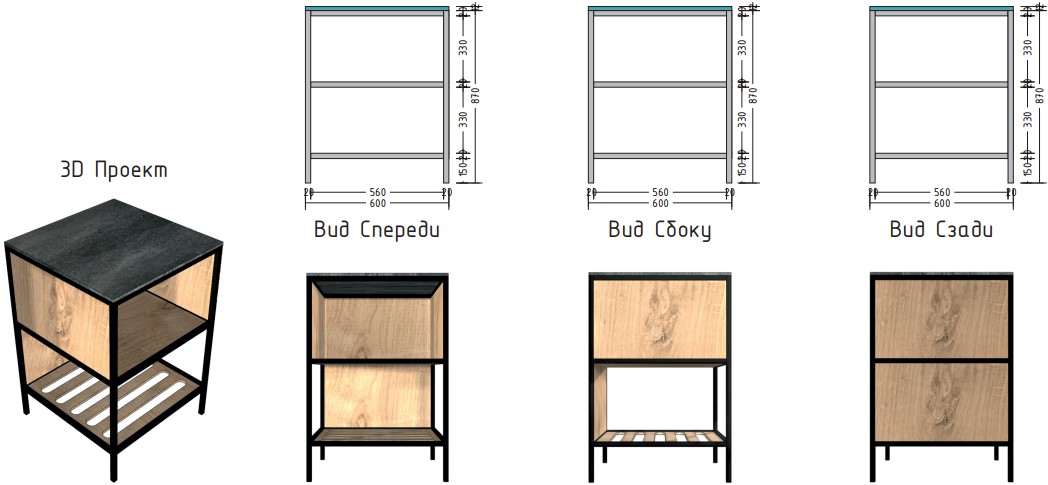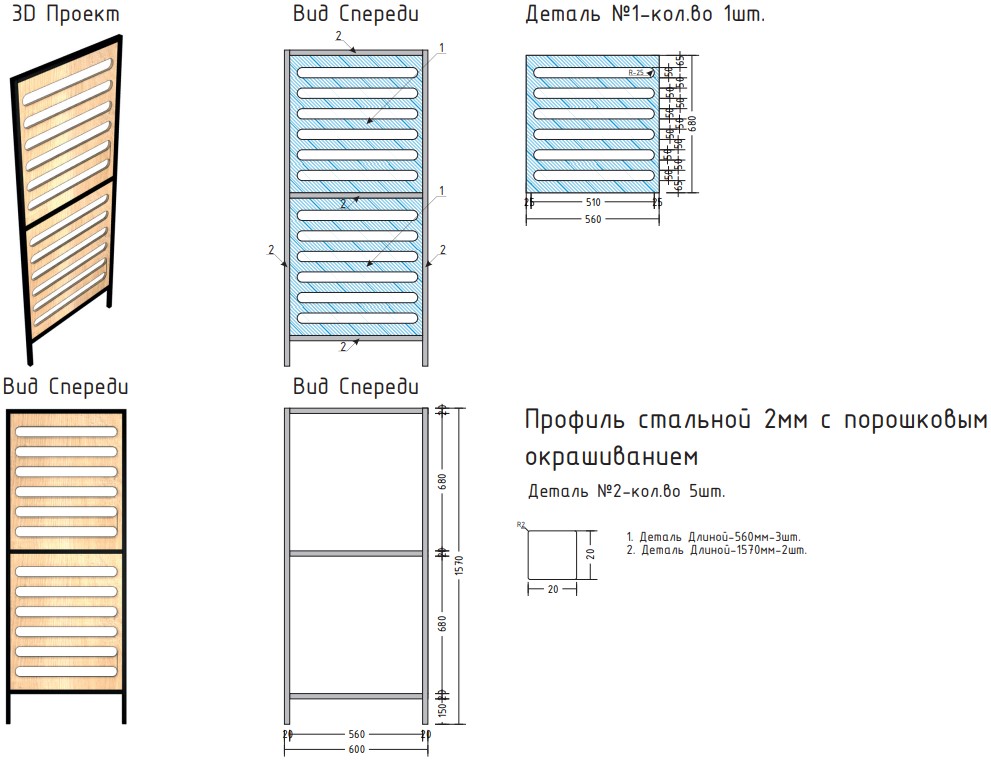 Выполнена из стального профиля черного цвета с порошковым покрытием, которое обеспечивает устойчивость к появлению коррозии и перепадам температуры.