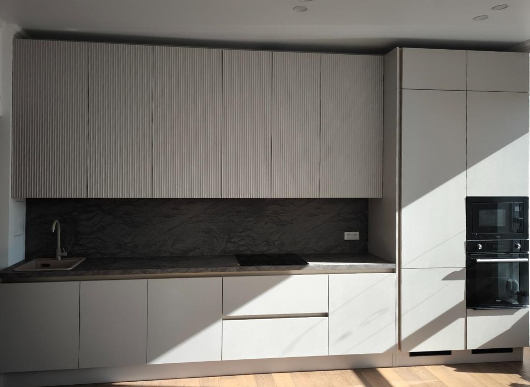 Современная кухня в светлых тонах для визуального простора